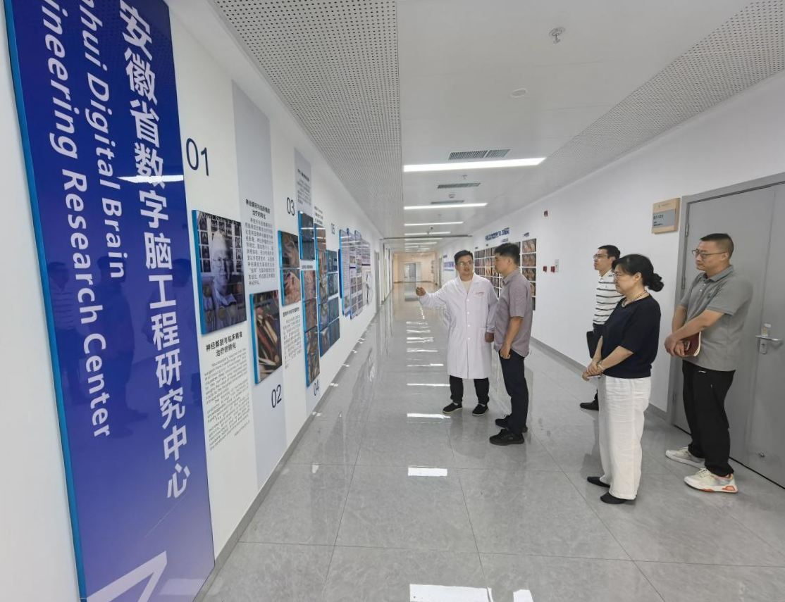 夏劲松、姚应水对刘兴国的到访表示热烈欢迎,并分别陪同参观考察。在产学研创中心,夏劲松详细介绍了产学研创中心的平台建设成果、发展规划以及产教融合实践。刘兴国对中心搭建的产学研协同创新平台给予高度认可,表达了在科技成果转化等领域开展深度合作的意愿。在脑科学研究院,刘兴国与姚应水、研究院执行经理江晓春展开深入交流。江晓春重点介绍了生物样本库的建设规模与应用成效,刘兴国则分享了自身研究方向与神经系统疾病的关联机制,双方表示希望依托脑科学研究平台,充分发挥各自优势,开展相关领域合作。
