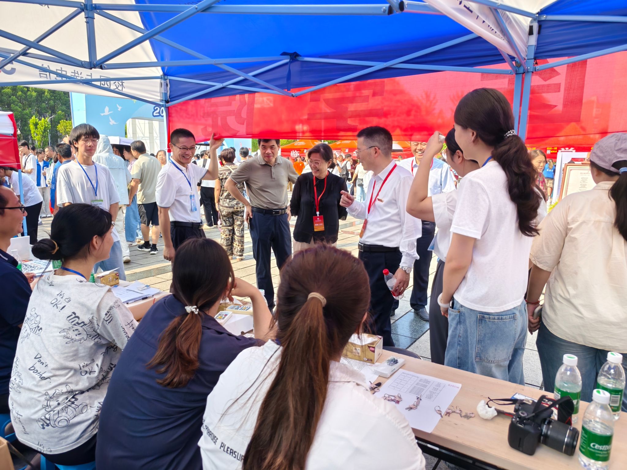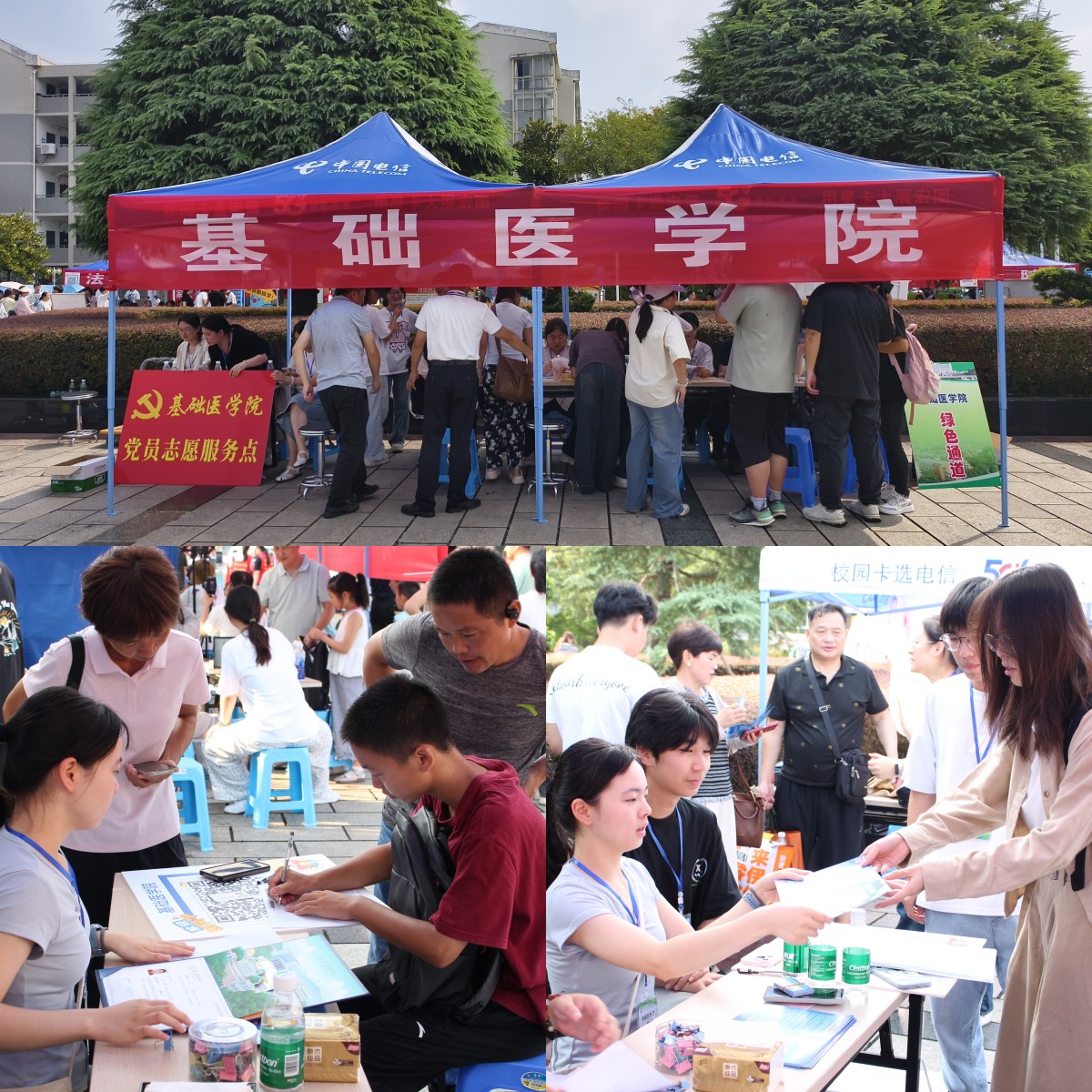 报到现场流程清晰、分工明确,志愿者员工穿梭在人群中,主动热情地为新生搬运行李、指引路线、答疑解惑,他们的精准引导和灿烂笑容成为迎新现场一道亮丽的风景线。公司的教师们耐心解答家长疑问,开展反诈宣传,提醒新生和家长们警惕诈骗陷阱,言语间充满关切,令人倍感安心。整个报到环节忙而不乱,各项工作有条不紊。公司特别设置了“基础医学优秀人文作品展”,展出员工创作的“人体解剖图谱”和“我与实验动物的故事”等,吸引了众多新生及家长驻足欣赏。这一特色展示不仅彰显了公司“科学精神与人文素养并重”的育人理念,更让新生初入校园便感受到医学的温度与厚度。