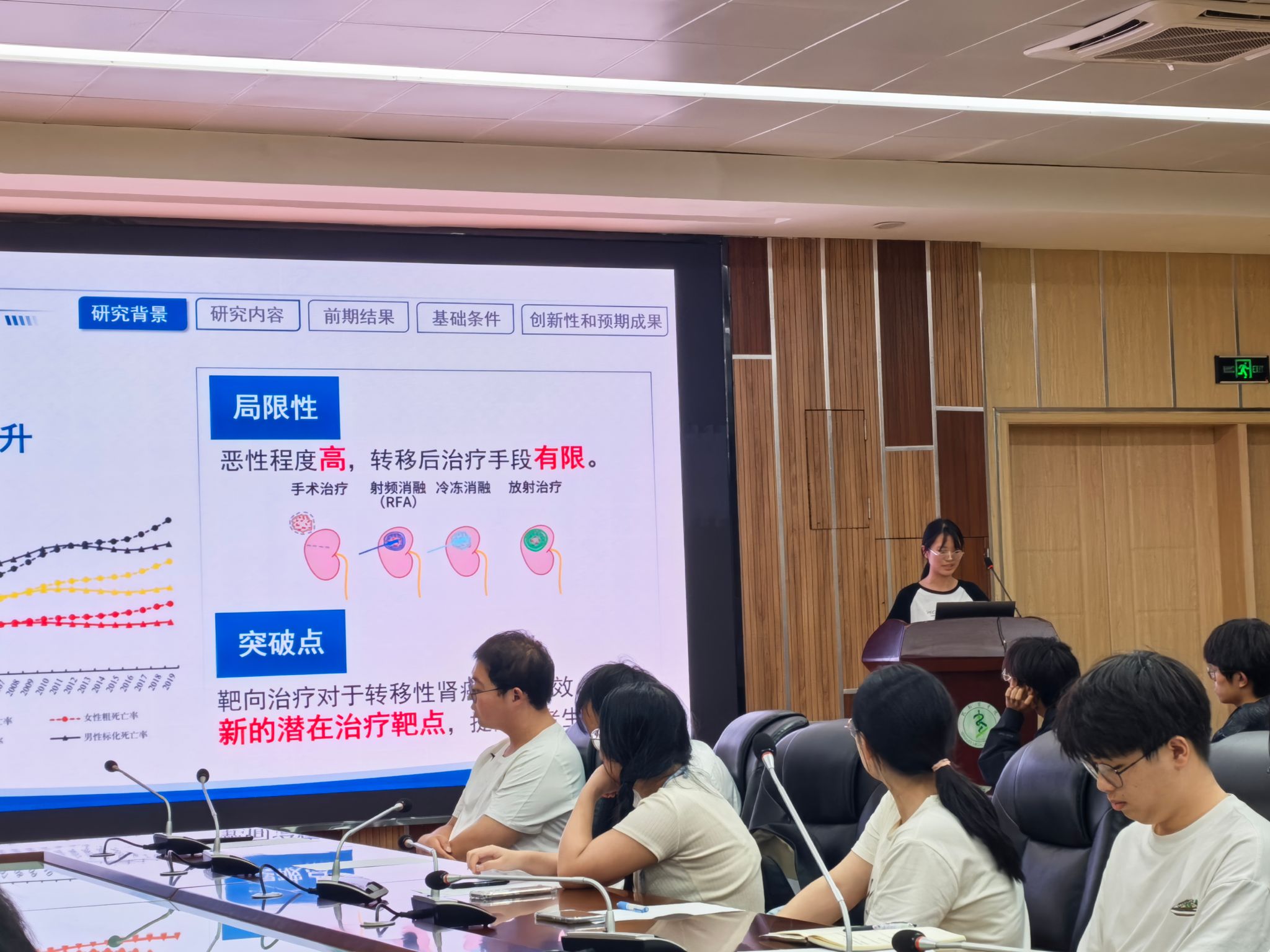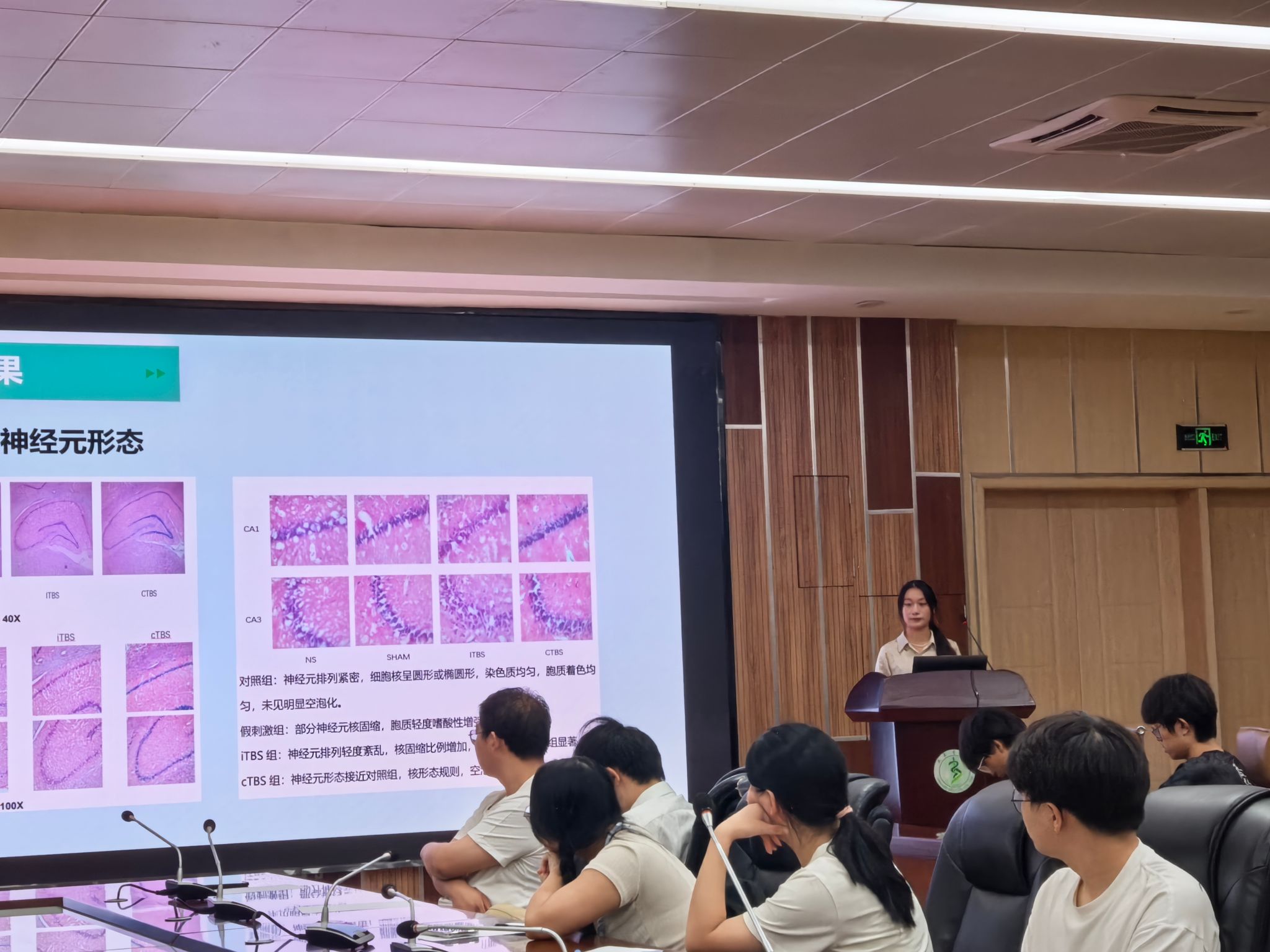 汇报环节中,12名2023级优秀本科生代表依次上台进行限时7分钟的PPT成果展示。汇报同学准备充分,从项目立项依据、前期研究进展、已获阶段性成果、遇到的问题及解决方案、下一阶段计划等方面进行了全面汇报,内容涵盖分子生物学、病理生理学、免疫学等多个基础医学前沿领域,展现了同学们严谨的科研态度和初步的科研能力。科研导师代表现场就每个项目的创新性、可行性及后续研究方向进行了精准提问和细致点评,为同学们进一步完善研究方案提供了极具价值的指导。