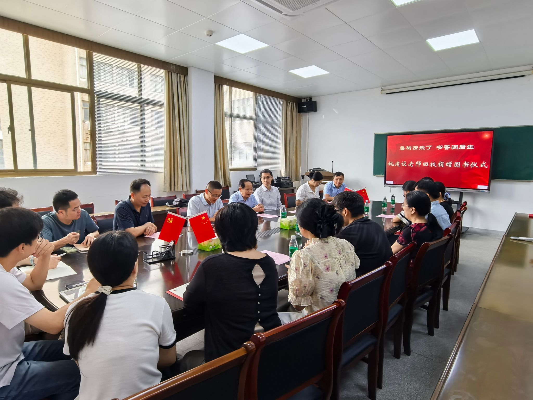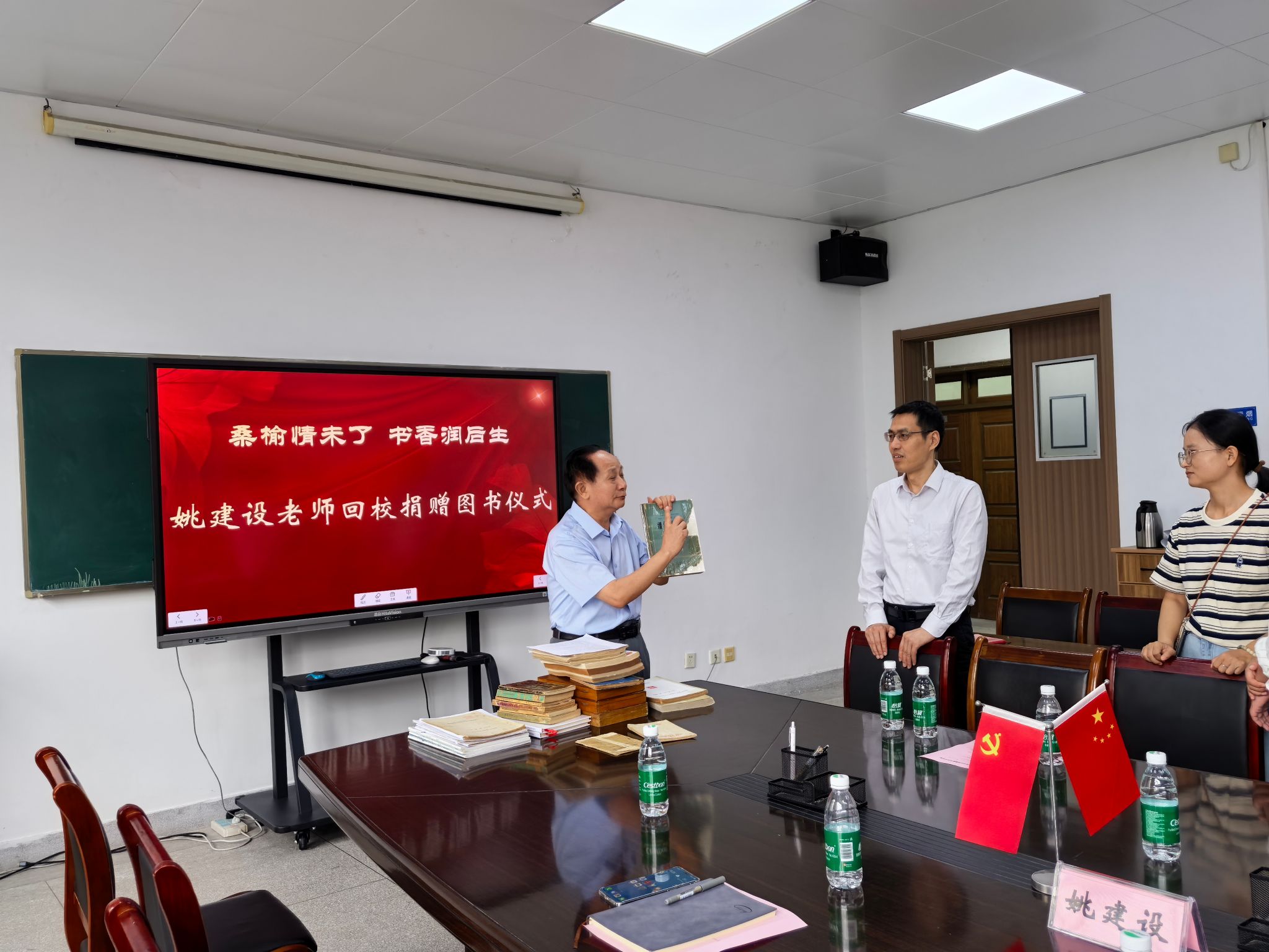 书香传情,师恩难忘。在第41个教师节来临前夕,公司隆重举行“桑榆情未了,书香润后生”老教师图书资料捐赠仪式。退休老教师姚建设重返校园,捐赠珍藏的图书资料,以这种特殊的方式延续他的教育情怀。公司党政领导班子及教师代表20余人到场共同见证了这一感人时刻,捐赠仪式由公司党委书记马旭明主持。