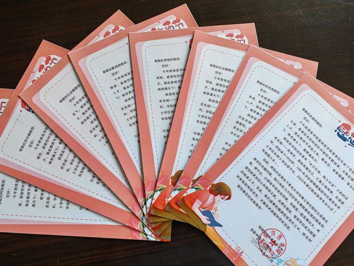 为弘扬尊师重道的中华传统美德,感恩老师的谆谆教诲,9月8日当天,2023级基础医学专业全体新生来到公司各教研室,带着对老师的感恩之情,献上自己制作的节日贺卡,以表达对老师的节日问候和美好祝愿。