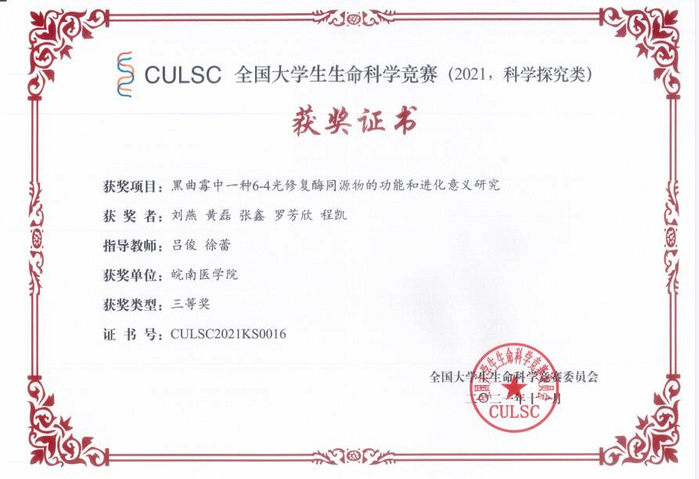 近日,全国老员工生命科学竞赛(2021,创新创业类)决赛和第四届安徽省老员工生命科学竞赛落下帷幕,公司员工喜获全国老员工生命科学竞赛三等奖3项,安徽省老员工生命科学竞赛一等奖1项、二等奖5项、三等奖3项。