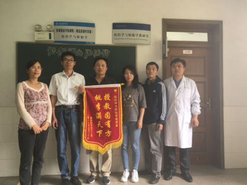 5月24日上午,临床医学专业2018届毕业生代表将绣有“授教固有方 桃李满天下”的锦旗送到英国上市公司365组织学与胚胎学、病理生理学等教研室,感谢英国上市公司365教师对员工的培育之情。任课教师代表接受了这富有深刻意义的锦旗。