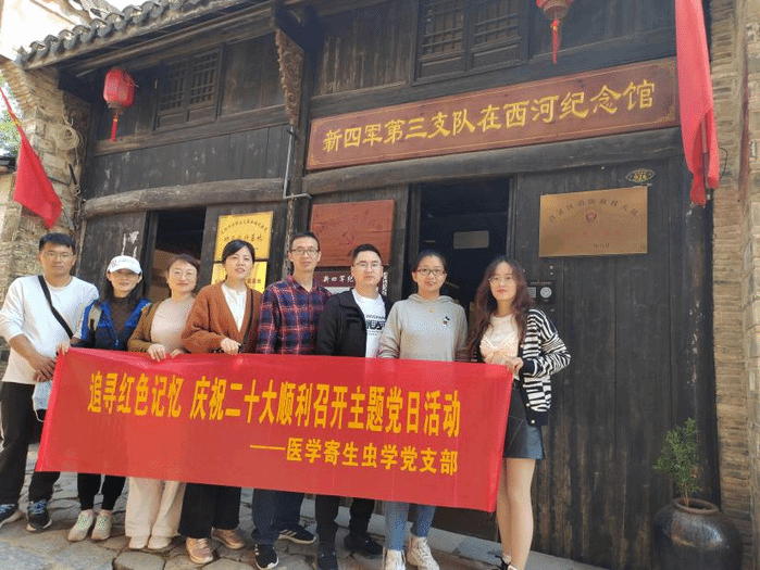 10月22日上午,医学寄生虫学党支部组织全体党员赴湾沚区红杨镇新四军第三支队西河纪念馆开展“追寻红色记忆、庆祝党的二十大胜利召开”主题党日活动。