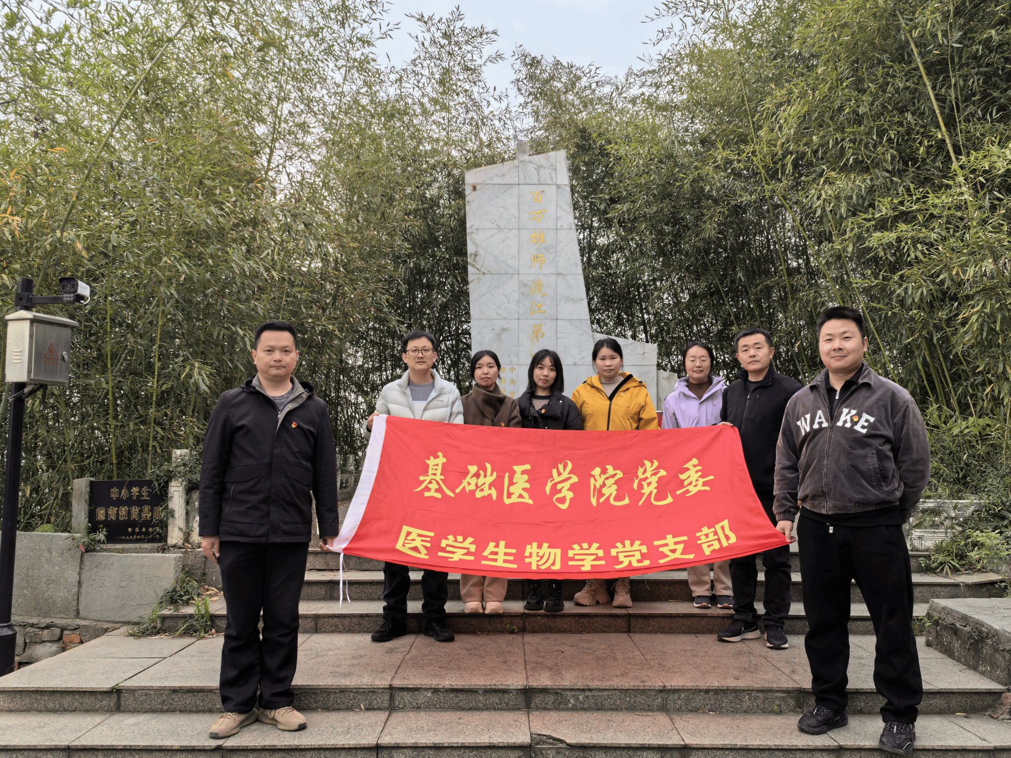 为传承红色基因、深植家国情怀,3月30日,医员工物学党支部全体党员前往繁昌县渡江战役第一登陆点——板子矶红色教育基地,开展“清明祭英烈”主题党日活动。活动以祭扫追思、重温誓词、参观学习、专题党课等形式,激励党员赓续革命精神、践行初心使命。
