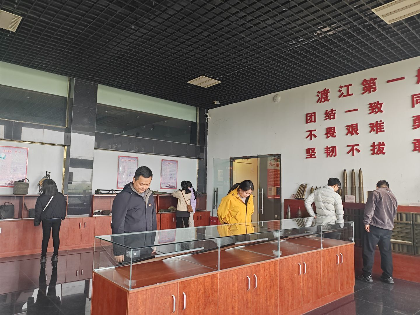 祭扫仪式后,全体党员走进渡江战役纪念馆,通过珍贵的历史文物和影像资料,沉浸式学习渡江战役历史,了解渡江战役的艰苦历程与辉煌胜利。1949年4月20日晚,人民解放军中集团第9兵团第一梯队在繁昌沿江一线发起渡江作战,第27军突击部队率先突破国民党第88军防线,于4月21日解放荻港、占领繁昌城,成为“打过长江去”的关键战役。党员们深刻领悟“坚定信念、军民同心、敢于胜利”的渡江精神,这种精神在新时代依然指引我们攻坚克难。