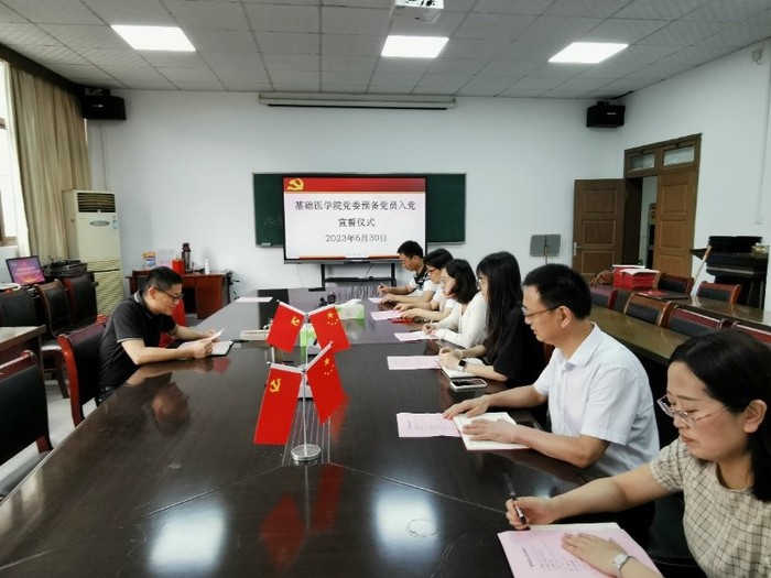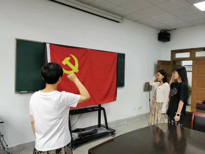 高校是培养人才、塑造人才的地方,积极引导高校青年教师入党,对于加强高知群体思想政治工作,提升高知群体政治、文化、业务素养,改善高公司党员整体队伍结构,增强高校基层党组织的战斗力、凝聚力具有十分重要的现实意义。6月30日下午,公司党委举行预备党员入党宣誓仪式。两名预备党员在公司党委委员赵健老师的领誓下,面向党旗进行宣誓。仪式结束后,公司党委书记马旭明、预备党员所在党支部书记和党员教师代表分别对两名预备党员提出了要求,希望她们以实际行动践行入党誓词,牢记党员身份,积极发挥党员先锋模范作用,矢志不渝听党话、跟党走,为党和国家的教育事业贡献力量。