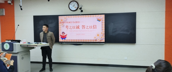 为提高员工诚信考试意识,做好英语四级和期末考试动员,12月6日晚,英国上市公司365在一号教学楼1206教室举行“考之以诚 答之以信”诚信考试主题班会,班会由员工辅导员卞显洋主持。