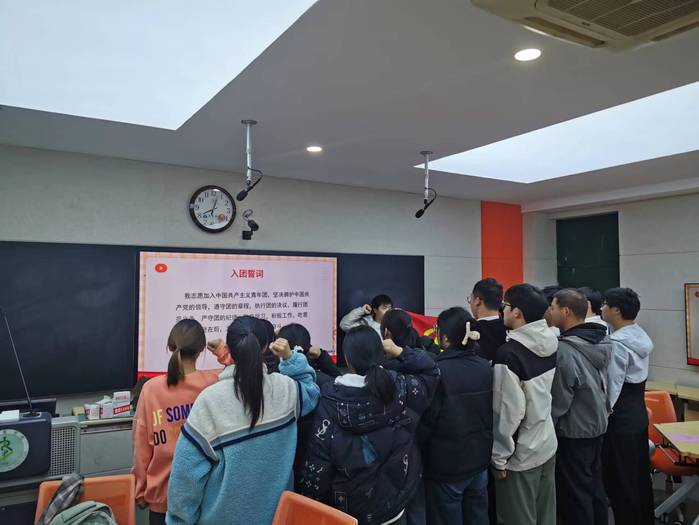 仪式上,2023级基础医学1班团支部副书记、班长沈婷慧带领全体团员共同学习了《中国共产主义青年团章程》(第一章:团员)内容,入团介绍人分别对新团员发表入团介绍意见,2023级基础医学1班团支部书记储晶琰宣读了团员大会决议,丁彩云宣读了院团总支审批意见。新发展团员鲁欢同学作表态发言,表示自己将严守共青团的纪律,服从组织的安排,为团组织的发展作出贡献。在宣誓环节,由支部书记领誓,全体团员面向团期进行了庄严的入团宣誓。宣誓仪式不但增强了团员的荣誉感和责任感,更加激发团员的爱国热情和社会责任感,培养团员的组织观念和纪律观念。