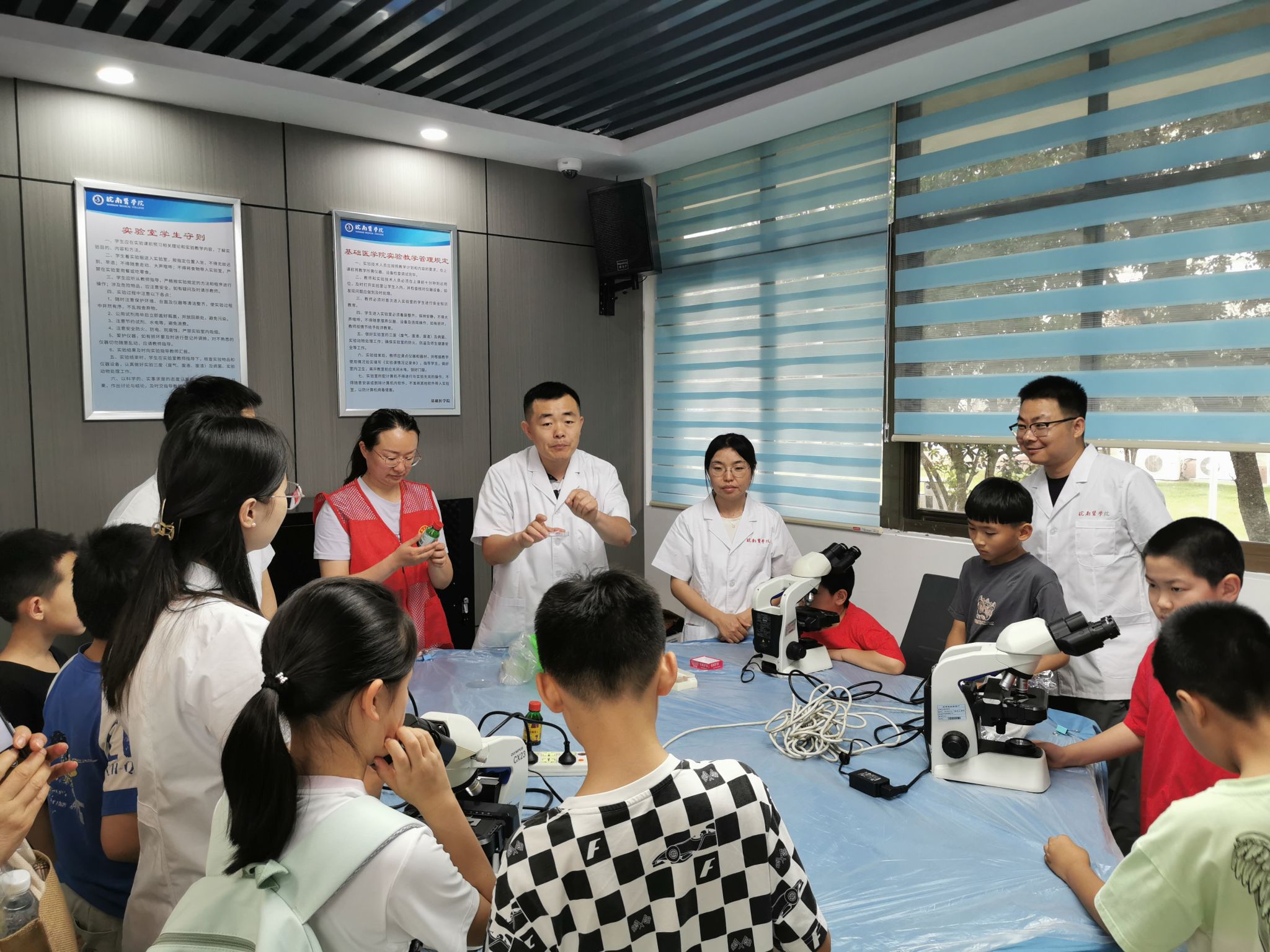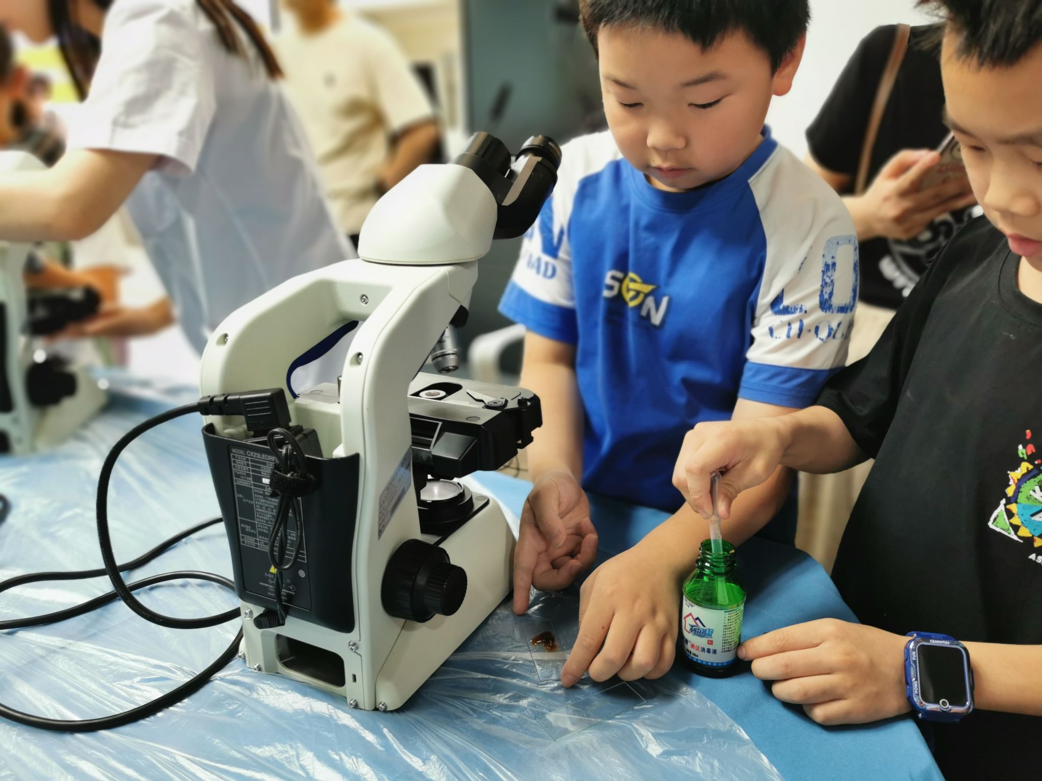 除了医学知识科普讲座外,活动还特别设置了实操演练环节。在专业老师的指导下,小朋友们自己动手绘制小动物彩图,制作洋葱切片标本,通过显微镜观察红细胞、洋葱表皮细胞等微观世界的细胞形态,体验了医学研究的乐趣。