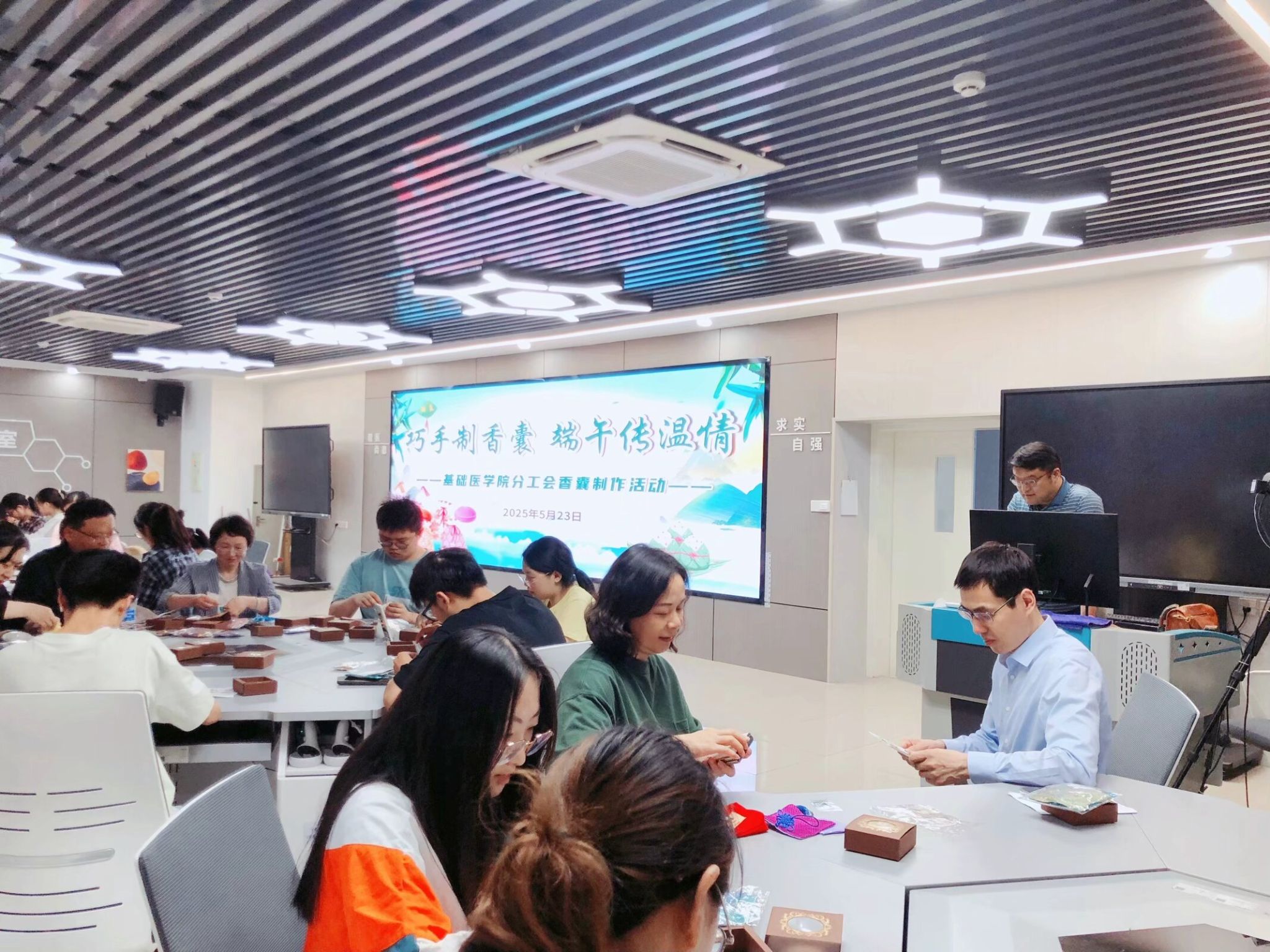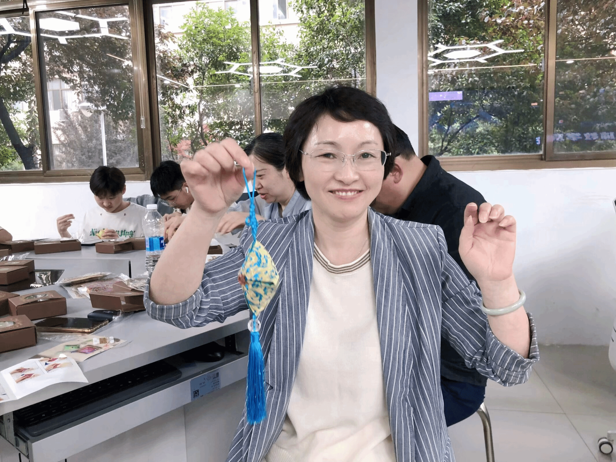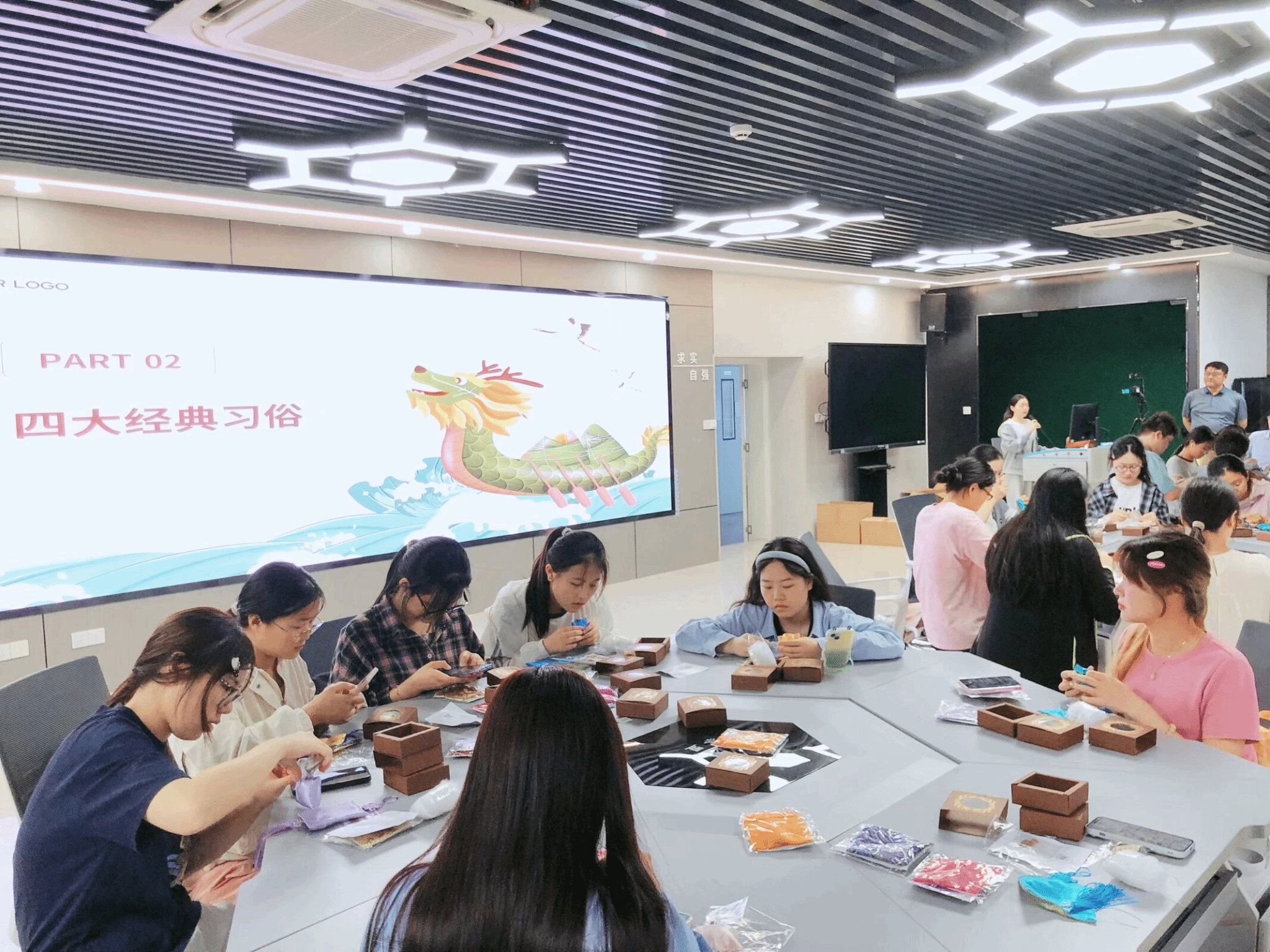 活动伊始,员工代表通过多媒体影像生动讲述了端午节的起源、习俗及趣味冷知识,从屈原精神、龙舟竞渡、“五黄”套餐,深入解读节日背后的文化底蕴。尤其聚焦香囊这一传统饰物时,其“驱虫避瘟”的实用价值与“祈福纳祥”的精神寄托引发师生共鸣,让大家直观感受到古人将生活智慧与美好愿景融入器物的文化匠心。