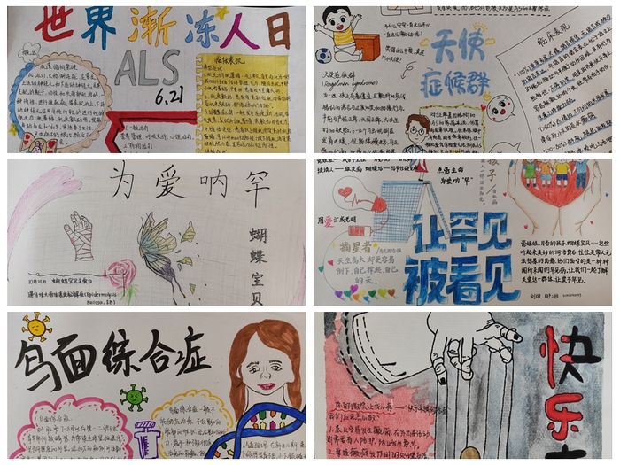 罕见病因其罕见、病例分散、人群患病率低等特点,在医学教育中关注度不高,医疗体系中具有遗传性罕见病专业知识的人员较为缺乏,导致许多罕见病不易被诊断、罕见病患者未能得到很好的治疗。医员工物学教研室在医学遗传学教学中融入罕见病的特点、种类,以及我国罕见病医疗现状和罕见病研究的意义,指导员工从我国《第一批罕见病目录》中选择罕见病病种,围绕其临床表现、发病机理、诊疗方法、患者群体现状等方向进行科普创作,鼓励自主创新性学习。参加活动的员工通过查阅资料、自主学习、自由创作,提交了大量手绘及电脑制作的科普作品。同学们通过作品图文并茂地解析罕见病知识,传递对罕见病群体的人文关怀,发出“让罕见被看见”、“为爱呐罕”的呼声,体现了科普创作的科学性、趣味性和人文性,具有强烈的感染力。